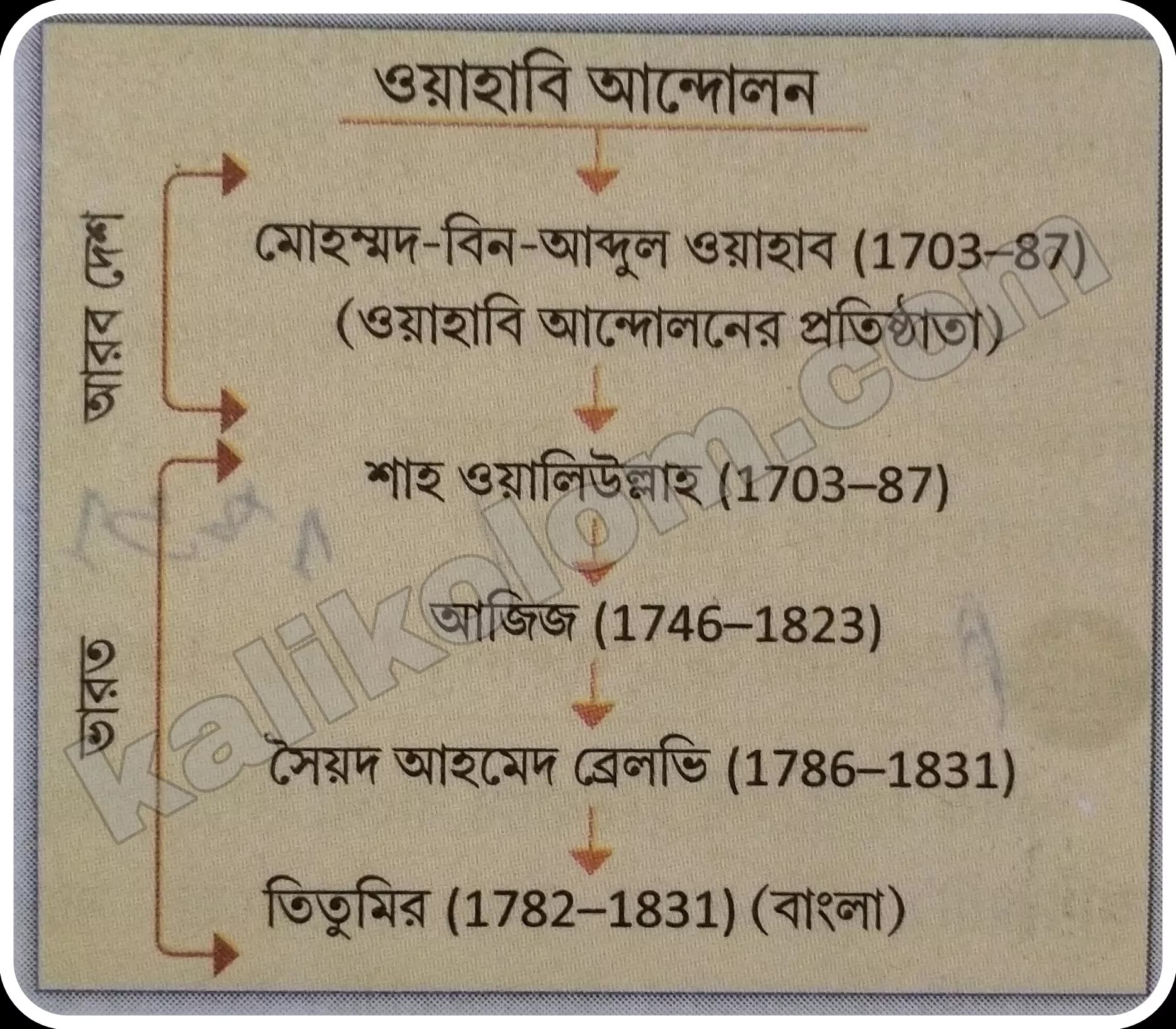 ইসলামের শুদ্ধিকরণের জন্য আরব দেশে আব্দুল ওয়াহাব ( 1703-1787 খ্রিস্টাব্দ ) নামে এক ব্যক্তি ওয়াহাবি আন্দোলনের সূত্রপাত করেন। ওয়াহাবি শব্দের অর্থ *নবজাগরণ*। ভারতে এই আন্দোলনের সূত্রপাত করেন দিল্লির এক মুসলিম শাহ ওয়ালিউল্লাহ ( 1703-1787 খ্রিস্টাব্দ ) কিন্তু এর প্রকৃত প্রতিষ্ঠাতা ছিলেন ওহাবি আন্দোলনের বিভিন্ন গ্রেফতখন রায়বেরিলির সৈয়দ আহমেদ ব্রেলভি বা সৈয়দ আহমেদ। তিতুমির হজ করতে গিয়ে সৈয়দ আহমেদের দ্বারা অনুপ্রাণিত হয়ে বাংলায় ওয়াহাবি আন্দোলনের সূত্রপাত করেন