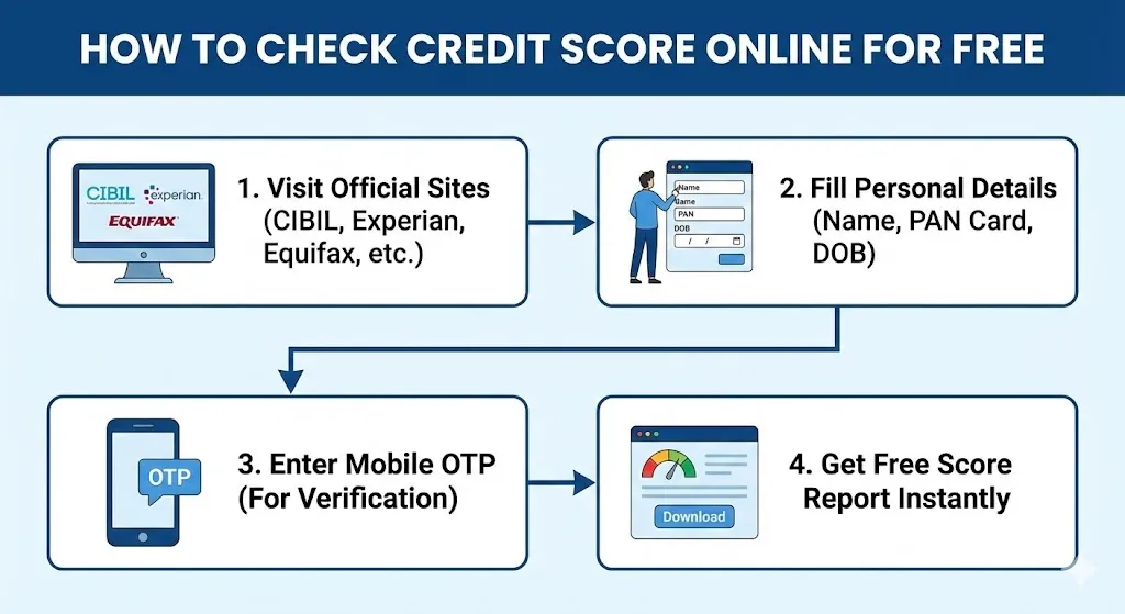 ২০২৫ সালে দাঁড়িয়ে ক্রেডিট স্কোর চেক করা খুবই সহজ। এর জন্য আপনাকে ব্যাংকে যাওয়ার কোনো প্রয়োজন নেই। আপনি আপনার স্মার্টফোন বা ল্যাপটপ থেকেই Free Credit Score Check করতে পারেন। নিচে ধাপগুলো আলোচনা করা হলো।
