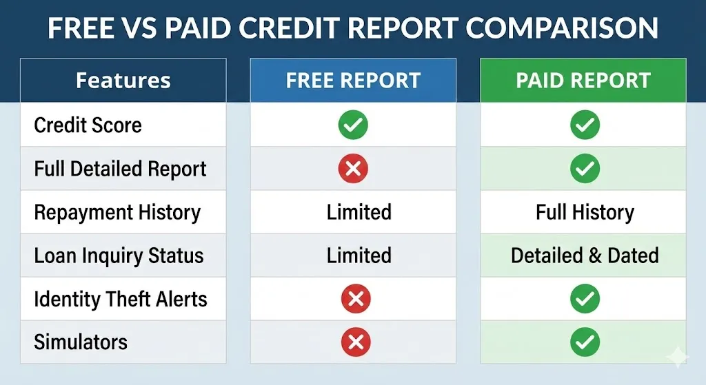এতক্ষণ আমরা ফ্রি রিপোর্টের কথা বললাম। এখন প্রশ্ন হলো, যদি ফ্রিতেই সব পাওয়া যায়, তবে Paid Credit Report বা সাবস্ক্রিপশন কেন কিনবেন? Paid Report-এর কিছু বিশেষ সুবিধা আছে যা ফ্রি রিপোর্টে পাওয়া যায় না। এটি মূলত তাদের জন্য যারা সিরিয়াসলি তাদের আর্থিক প্রোফাইল উন্নত করতে চান।