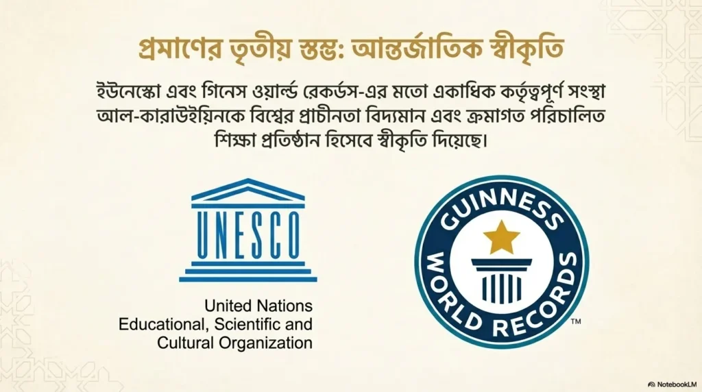 UNESCO এবং Guinness World Records—উভয়েই al-Qarawiyyin-কে বিশ্বের “Oldest existing and continually operating educational institution” হিসেবে স্বীকৃতি দিয়েছে।