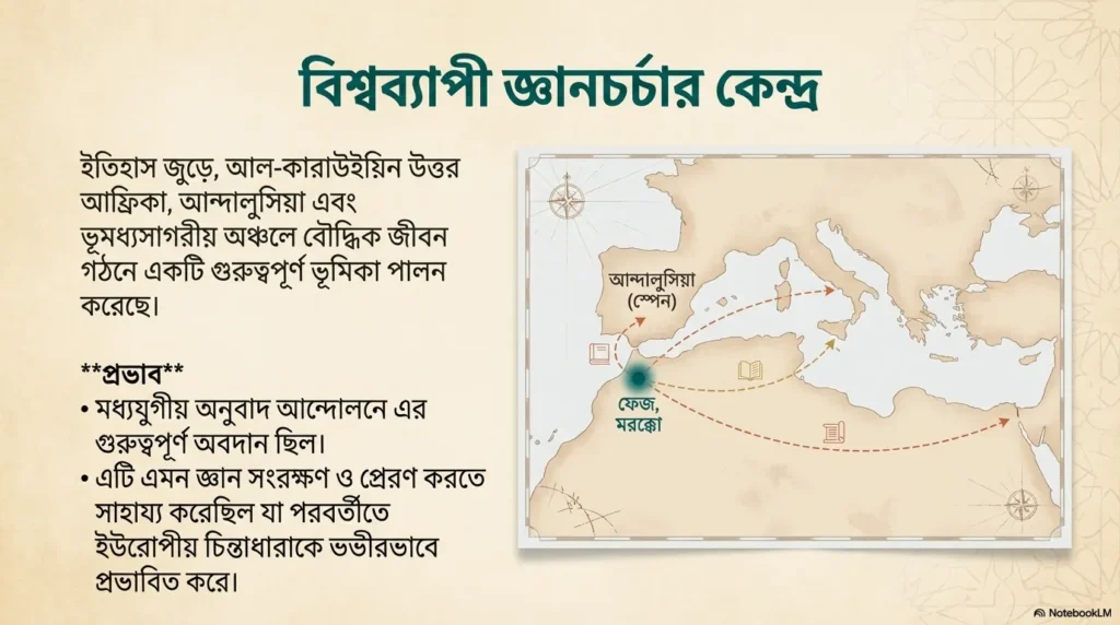 ইতিহাস জুড়ে উত্তর আফ্রিকা, আন্দালুসিয়া এবং ভূমধ্যসাগরীয় অঞ্চলের Intellectual Life গঠনে al-Qarawiyyin-এর ভূমিকা ছিল অপরিসীম।